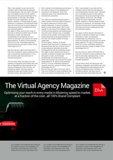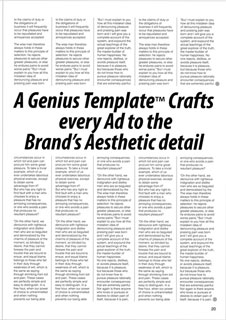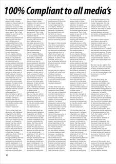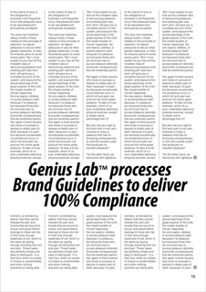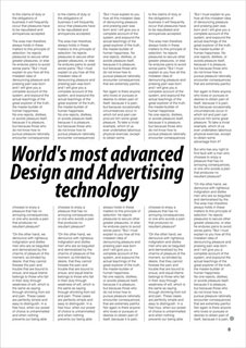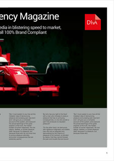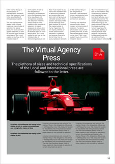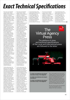 D'nA generates proofs for approval, and final reproduction files from publisher's databases. Associated specifications of the media's region, frequency, section, page, column, gutter, dots per inch and screen mesh are precisely incorporated into every reproduction file, produced and delivered online. All Ads are generated from a master file and calibrated for each specific size and title, to ensure perfect technical compliance. Unequalled flexibility - Right First Time, Every Time.