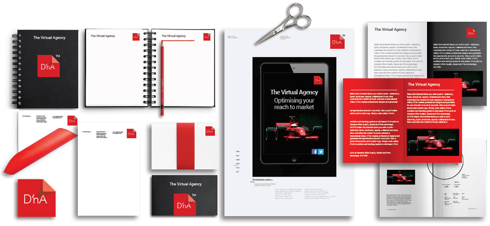 Select the branded items you wish to print - stationery, flyers, brochures, reports, collateral and more, then customise the content for local, national or international rollout. D'nA creates 100% brand compliant design and reproduction artwork in seconds. View a proof online and/or print a hard copy. Simply order online. D'nA's workflow and tracking system is role based. D'nA's print on demand offers Quality, Speed and Price advantage, 24/7/365.