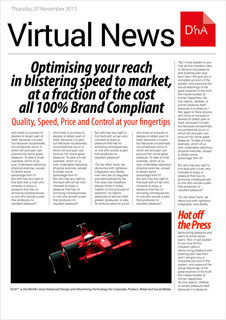 A single D'nA Genius Template™ re-sizes a design to any media application worldwide, with absolute flexibility. Create, manage, send, track, publish and store designs online. D'nA delivers 100% brand compliance and simplifies communication, to Realise brand value. Cut production cost by up to 80% and increase speed to market by up to 90%. D'nA reaches every facet of marketing, advertising, design and branding media. All the features you'll ever need in the office and on mobile ...anywhere. D'nA, the world's most advanced brand technology.